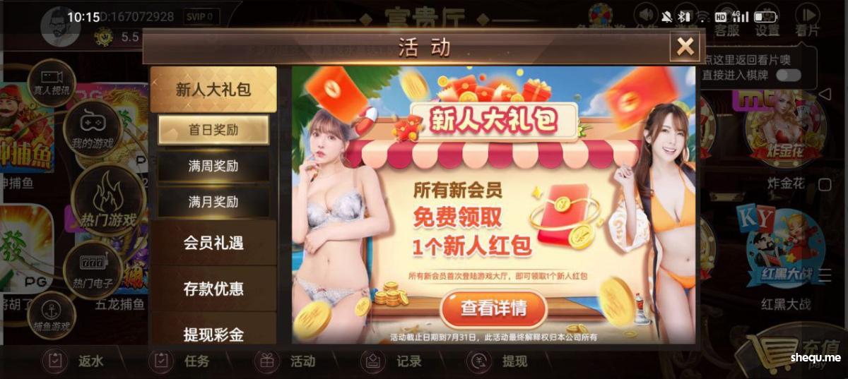 下载直接弹一个红包领取就行。