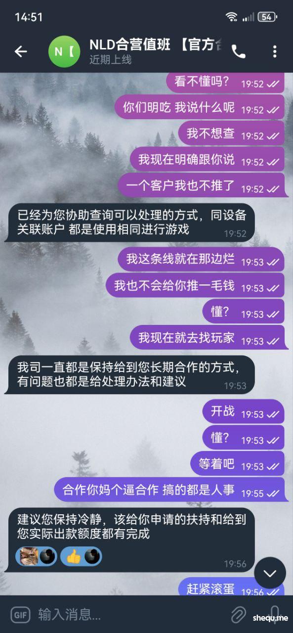 说代理线路异常,让我继续发展新增,今年给狗万博做了60万的负盈利,试问平台玩家不可控,