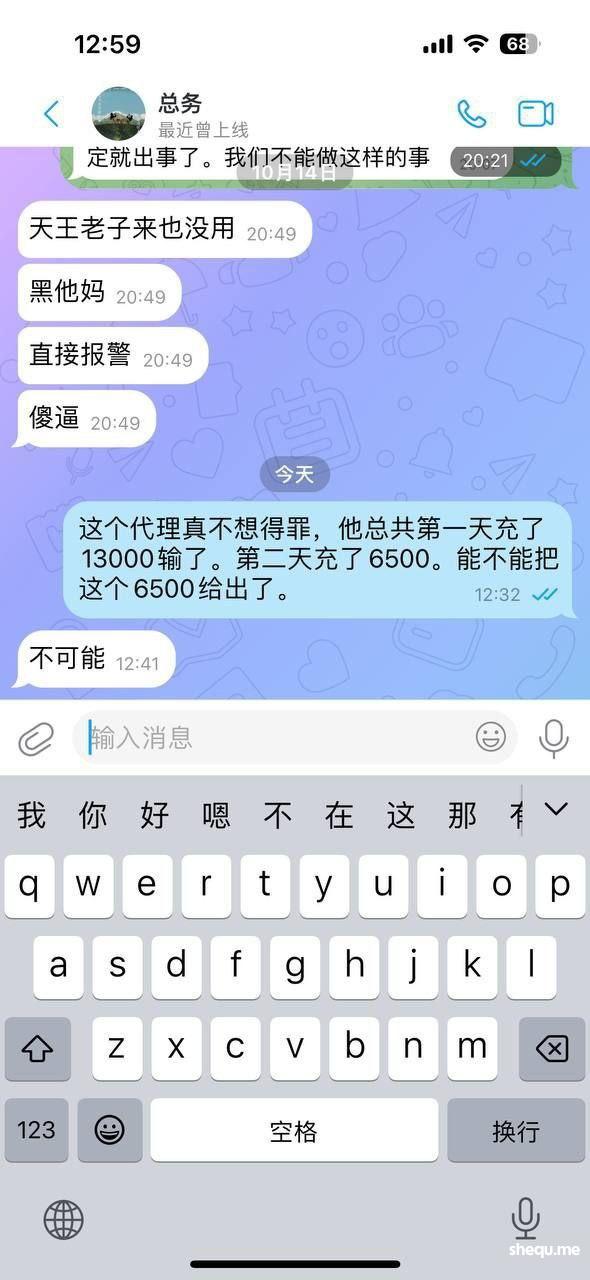 这平台,是奥创开的 他妈逼的主管还嚣张的一逼,直接说,你们这群垃圾代理,黑你们就黑你们,能拿我怎么样,超嚣张